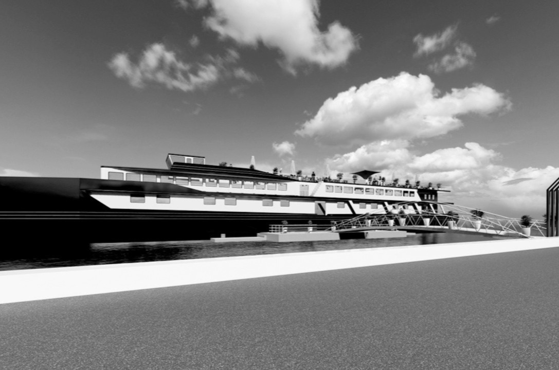 O barco ficará ancorado junto ao cais dos pescadores, e numa primeira fase terá aberta uma esplanada no deck exterior do navio. Posteriormente será alargada a oferta, com a abertura de bares, restaurante e vinte e quatro quartos.